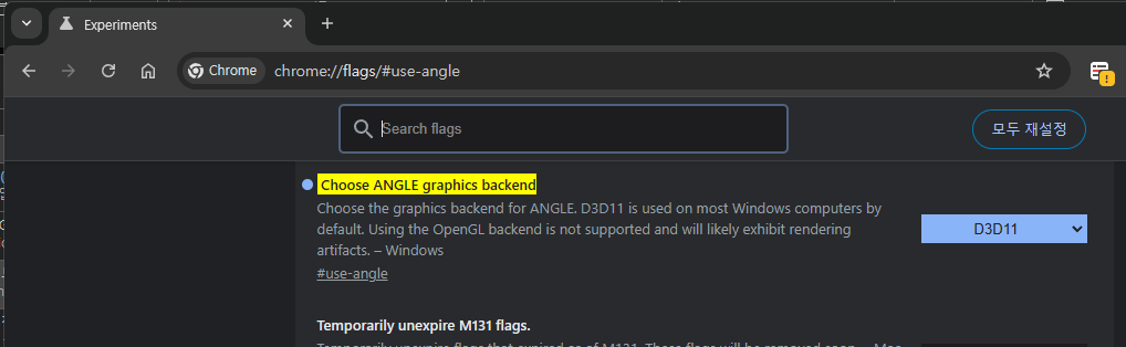 Firefox 및 Edge 에서는 AV1 디코드가 잘 되는데 Chrome에서만 안 되는 경우 chrome://flags/#use-angle 에서 Choose ANGLE graphics backend 값을 D3D11로 변경 (Dxva Checker 에서 확인 된 프레임웍)