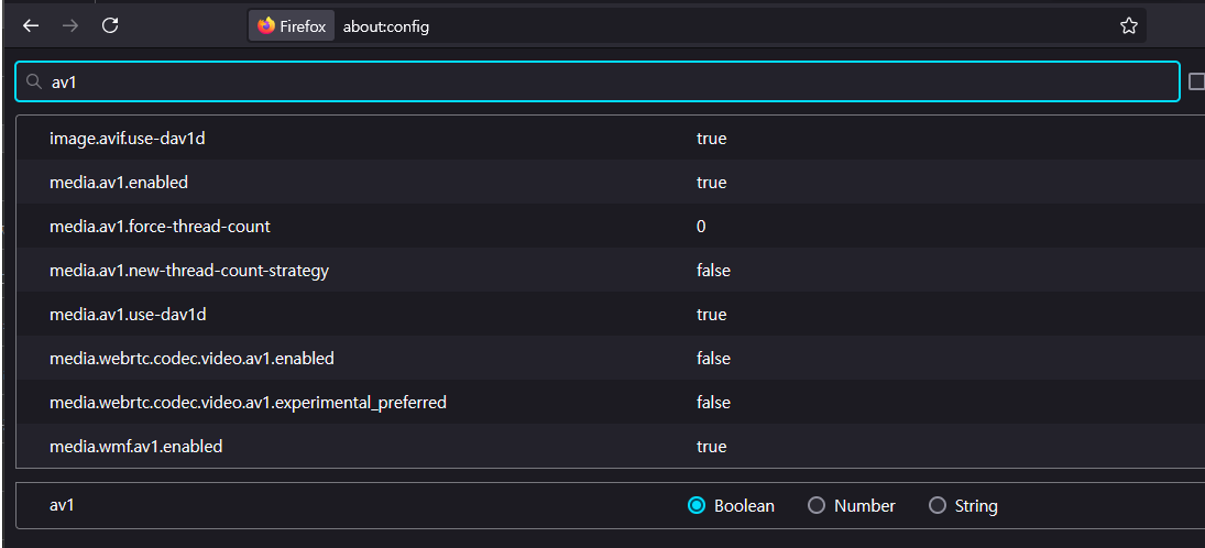 Firefox 에서는 about:config 로 gfx 또는 av1의 설정을 변경할 수 있음. 평소에 관련 설정을 변경한 이력이 있다면 Chrome 이나 Edge 등의 다른 브라우저로 테스트 하거나 설정 초기화 (재설치) 하는 것을 추천