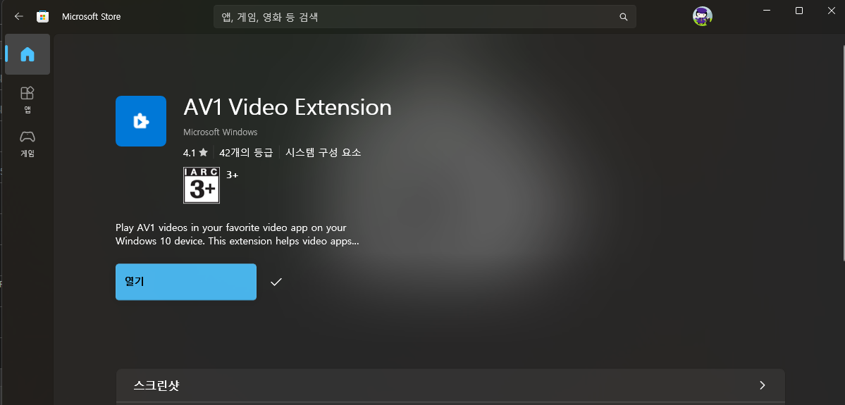 Microsoft Store AV1 Video Extension 설치 경로